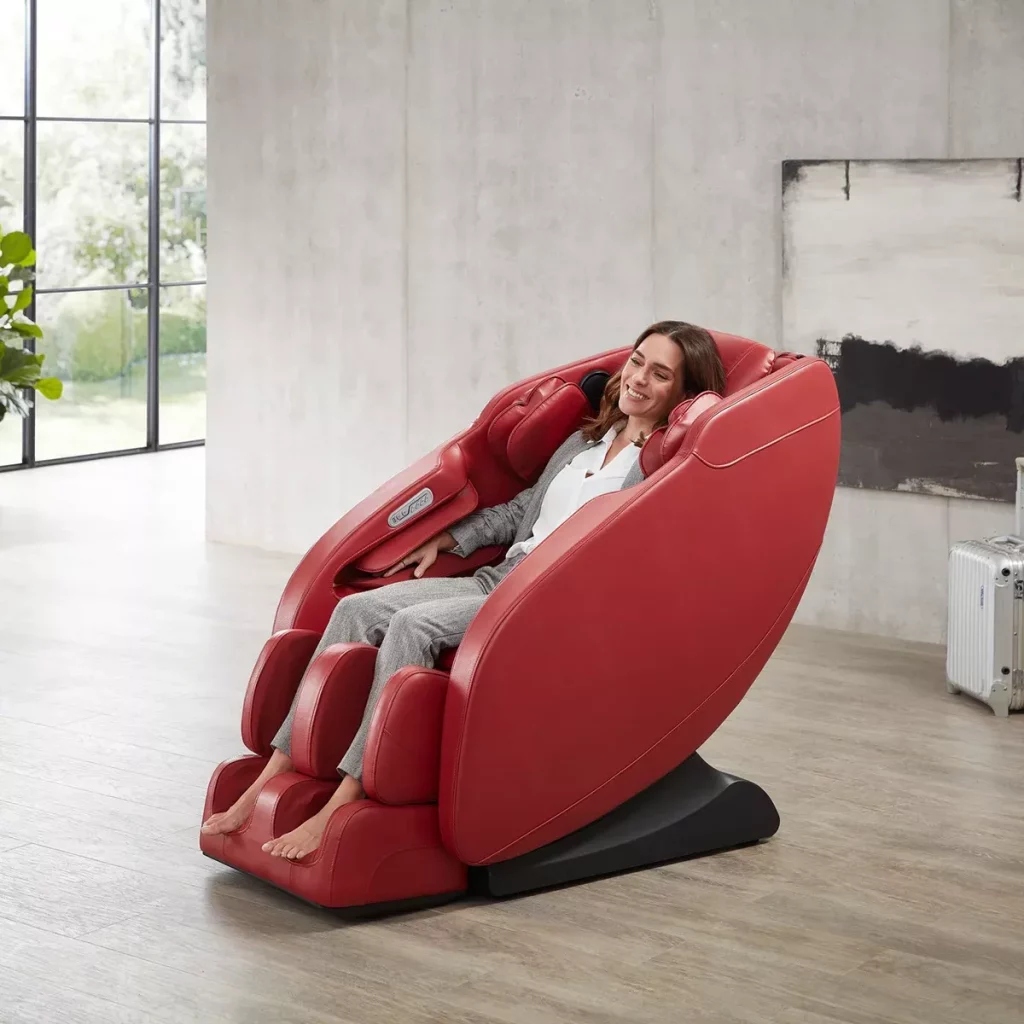 Integrierte Wärme im Rückenbereich sowie Luftkissenmassage an Armen, Waden und Füßen – für ganzheitliche Erholung.Bluetooth-Lautsprecher & App-Steuerung